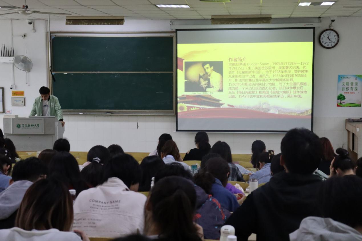 4月23日是世界读书日,2019级全体同学开展了“阅读红色经典,弘扬革命精神”红色书籍分享会活动。活动中,部分同学代表分享了《钢铁是怎样炼成的》、《把一切献给党》、、《红岩》、《写给青少年的党史》以及《红星照耀中国》等等,大家通过追忆书中那些难忘的峥嵘岁月,再现红色年代的时代强音,赢得现场阵阵掌声。
