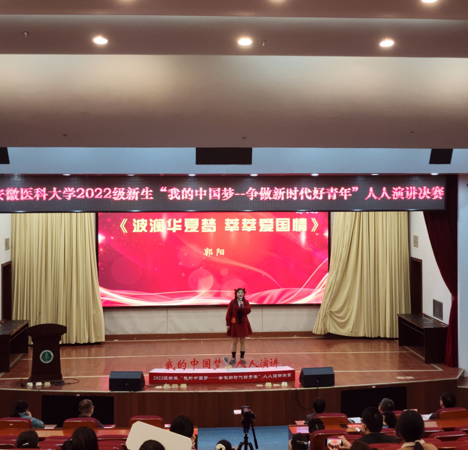 2023年3月29日下午,我校2023年“我的中国梦——争做新时代好青年”人人演讲活动决赛在图书馆第一学术报告厅举行,通过班级初赛、肉漫屋 复赛,肉漫屋 护理3位本科生、2位研究生齐聚决赛现场,共同讲述他们的波澜华夏梦和莘莘爱国情。