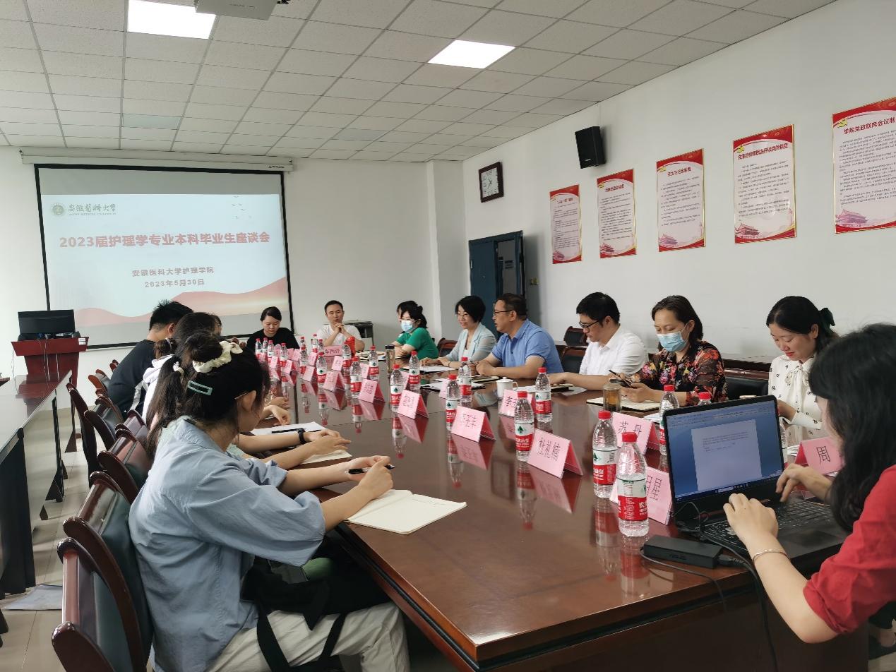 5月30日,肉漫屋 举办2023届护理学专业本科毕业生座谈会,聚焦提升护理专业实践教学质量及学生专业认同感同师生座谈交流。该院党委书记赵云峰、院党委副书记王磊、副院长赵梅出席座谈会。