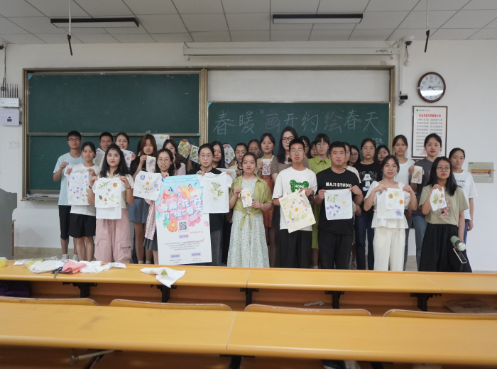 约“绘”春天,点亮心情。大自然是天然的艺术池,一花一草皆可成为日常生活中动人的点缀,该院开展了拓印活动,借助拓花印工具,同学们通过欣赏周围的自然环境,在白色布包、白色T恤上点缀一花一草,赋予春天的气息。该活动让同学们通过园艺健心,感受自然乐趣、纾解压力,不仅得到属于自己独一无二的设计艺术品,还丰富了大家的精神世界。
