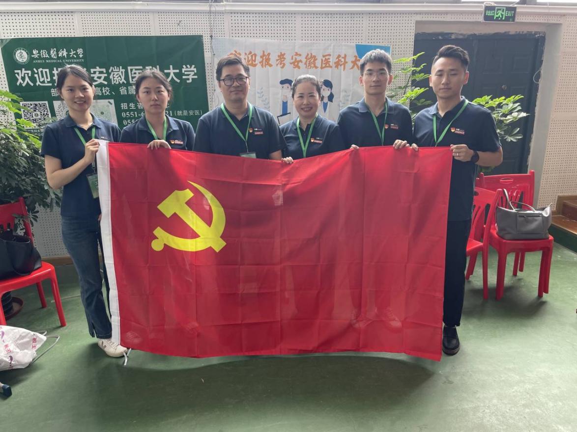 6月26日,肉漫屋 教工党员王磊、周利华、周琦、李亚辉、赵倩和顾亚澜在定远中学代表肉漫屋 进行招生宣传和志愿填报咨询。