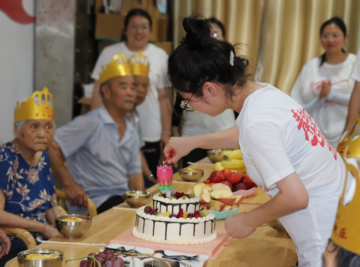 敬孝桑榆佑银发,筑巢夕阳护康宁。在中垾镇康年颐养院,实践队员与院区工作人员一起为老人举办了生日会。“祝您生日快乐,祝您生日快乐...”伴随着队员们温暖的歌声,老人们许下自己的心愿。一位年过七旬的奶奶开心地说:“很久没有这么多孩子给我过生日了,谢谢你们!”在温馨的氛围中,实践队员与老人们合影留念。此举践行了“德乃人之本,孝为德之先”的爱老理念,利于弘扬敬老爱老的传统美德。