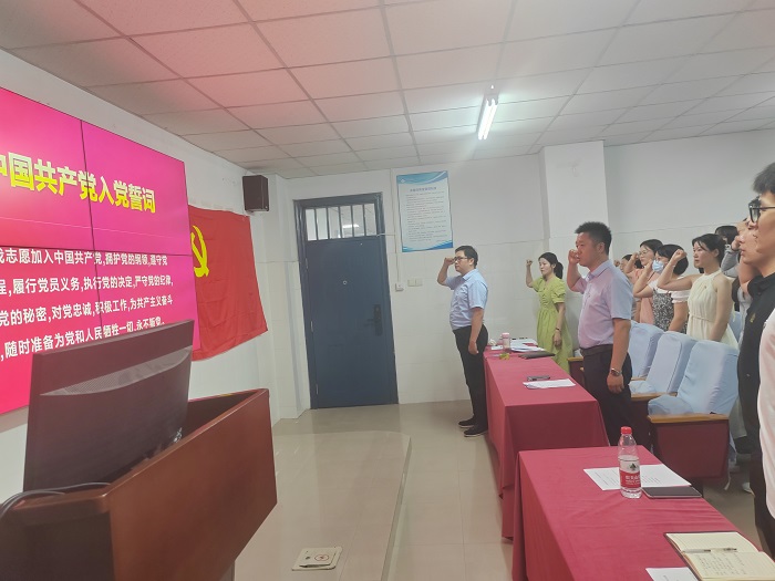 宣誓后,两位新党员代表作表态发言,表示将不断加强党性修养和纪律规矩意识,更好发挥先锋模范作用。