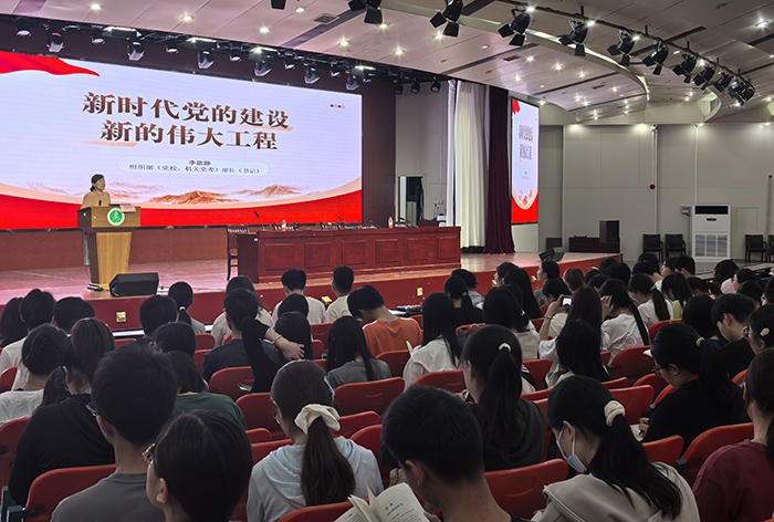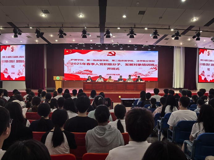 4月29日晚,肉漫屋 、第一临床医肉漫屋 、第二临床医肉漫屋 、法肉漫屋 四家单位分党校2025年春季入党积极分子、发展对象培训班开班。校党委组织部(党校、机关党委)部长(委员、书记)李震静出席开班式,并在开班式后为全体学员作题为《新时代党的建设新的伟大工程》的首场专题理论授课。