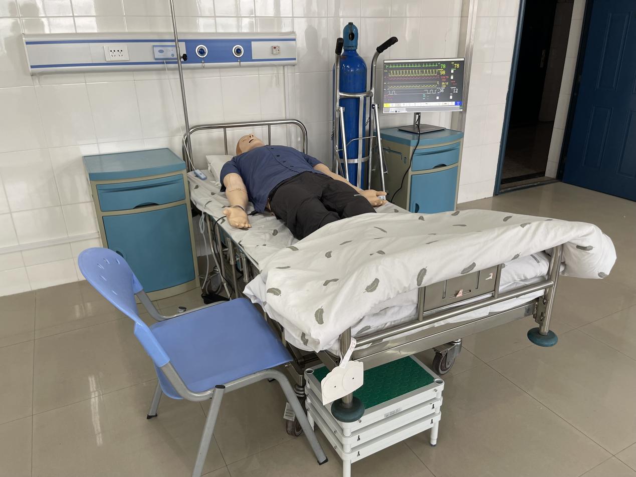 急危重症护理学实验室配备了SimMan Essential智能综合模拟人、高智能数字化成人综合急救技能训练系统、成人心肺复苏系统、气管插管训练模型、除颤仪、呼吸机等先进急救设备,主要承担《急危重症护理学》等课程的实践教学。实验室聚焦心肺复苏、气道管理、创伤急救、监护技术等核心技能训练,通过高度仿真的临床情景模拟,培养学生对危重症患者的快速评估能力、应急处理能力和团队协作精神。实验室可同时容纳30名学生进行分组实操,年均承担约200学时教学任务,为培养急危重症护理人才提供重要实践保障。